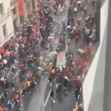 Το γιορτινό κλίμα και οι ξέφρενοι πανηγυρισμοί των φίλων των «ρεντς», διακόπηκαν απότομα, όταν ένα αυτοκίνητο παρέσυρε δεκάδες ανθρώπους, προκαλώντας τον τραυματισμό αρκετών.