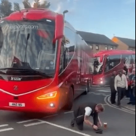 Απίστευτο σκηνικό: Οπαδός της Πάλας μπλόκαρε το πούλμαν της Λίβερπουλ για να δέσει τα κορδόνια του (video)
