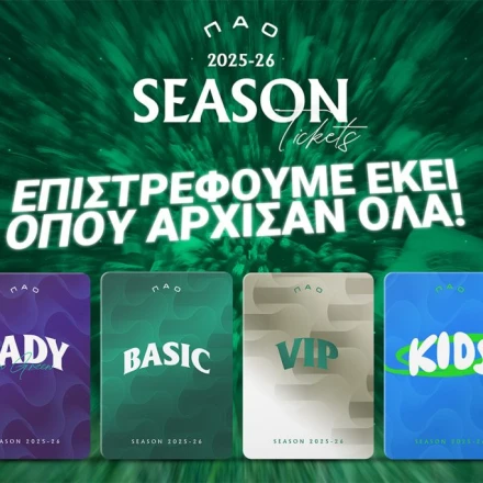 Η διάθεση των εισιτηρίων διαρκείας 2025/26 απευθύνεται σε ενεργά μέλη του Παναθηναϊκού Α.Ο. μέσω του κωδικού κάρτας μέλους (περισσότερες πληροφορίες σχετικά με έκδοση ή ανανέωση της κάρτας μέλους https://www.pao1908.com/membership).