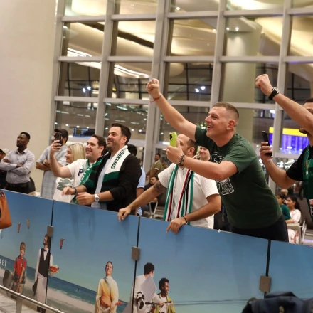 Λίγοι φίλαθλοι του Παναθηναϊκού βρέθηκαν έξω από το αεροδρόμιο του Άμπου Ντάμπι για να υποδεχθούν την ομάδα.