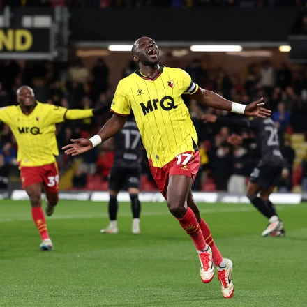 Ο Μούσα Σισοκό με τα κίτρινα της Γουότφορντ πριν ντυθεί στα κόκκινα του Ολυμπιακού / Πηγή: Jasper Wax / Getty Images