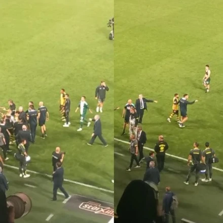 Νέα σύρραξη μεταξύ των παικτών της ΑΕΚ και του Παναθηναϊκού μετά το τέλος του ντέρμπι.