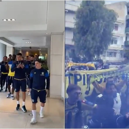 Μάλιστα, οι φίλοι των «κιτρινομπλέ» δεν έχασαν την ευκαιρία να επισκεφθούν το ξενοδοχείο όπου διαμένει η αποστολή, προκειμένου να εμψυχώσουν παίκτες και τεχνικό επιτελείο ενόψει της κρίσιμης αναμέτρησης με τον ΟΦΗ το απόγευμα της Τετάρτης (2/4, 17:00).