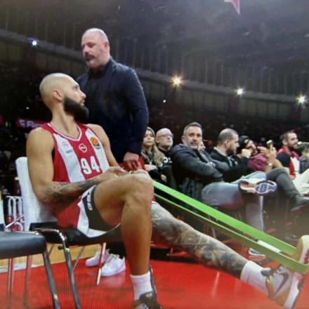 Πήγε στον «ερυθρόλευκο» πάγκο, έκανε διατάσεις με ένα λάστιχο και επέστεψε άμεσα στο παρκέ, σκοράροντας τον 16ο του πόντο (πέτυχε περισσότερους εντέλει) λίγο αργότερα.