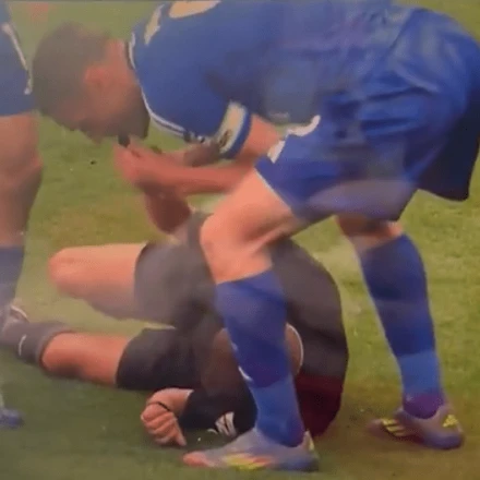 Ο Ντέιβιντ Γουέμπ συγκρούστηκε καταλάθος με τον Τζόρνταν Αγιού και ο διαιτητής της αναμέτρησης έπεσε στο έδαφος. Όπως είναι λογικό το παιχνίδι σταμάτησε.