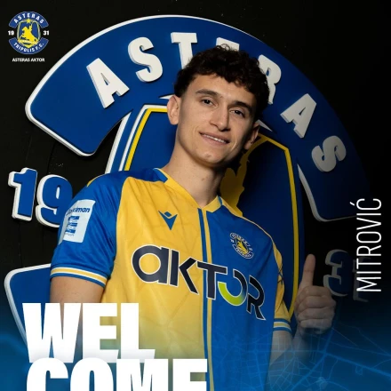 «Ο ποδοσφαιριστής, Stefan Mitrovic εντάσσεται στο δυναμικό του ASTERAS AKTOR με τη μορφή δανεισμού από την ιταλική ομάδα, Hellas Verona. Ο Stefan γεννήθηκε στις 15 Αυγούστου 2002 στην πόλη Krusevac της Σερβίας και αγωνίζεται ως επιθετικός.