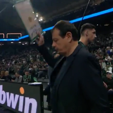 Μάλιστα, ο Εργκίν Αταμάν έγινε έξαλλος με τους παίκτες του και τις ενέργειές τους στην άμυνα. Σε ένα ταιμάουτ, κάλεσε άπαντες στον πάγκο και... ξέσπασε στο πινακάκι του. Το οποίο πέταξε με δύναμη στο glass floor του T-Center, δείχνοντας την αγανάκτησή του με τα όσα έβλεπε.