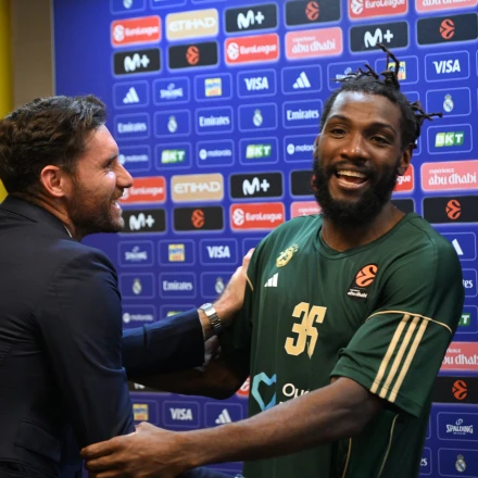 Ο Κένεθ Φαρίντ έκανε ακόμη ένα εντυπωσιακό ματς. Ο 36χρονος ψηλός της ομάδας του Εργκίν Αταμάν έφτασε την Κυριακή στην Αθήνα για να ενισχύσει το τριφύλλι και στους δύο πρώτους αγώνες που έχει φορέσει την πράσινη φανέλα κατάφερε να ξεχωρίσει. Στο φινάλε του αγώνα με τη Ρεάλ, ο Φαρίντ είχε μία συνομιλία με τον Ρούντι Φερνάντεθ.
