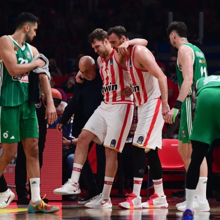 Κακή εξέλιξη για τον Ολυμπιακό στον τέταρτο τελικό κόντρα στον Παναθηναϊκό, με τον Σάσα Βεζένκοφ να αποχωρεί τραυματίας στο φινάλε του πρώτου ημιχρόνου.