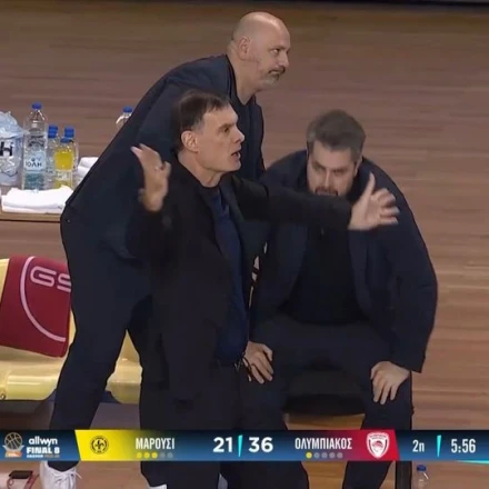 Έξαλλος με τους παίκτες του ήταν ο Γιώργος Μπαρτζώκας κατά τη διάρκεια του πρώτου δεκαλέπτου της αναμέτρησης του Ολυμπιακού με το Μαρούσι στο πλαίσιο των ημιτελικών του Allwyn Final 8. Οι παίκτες της ομάδας του Πειραιά έχασαν την μπάλα και αυτό οδήγησε σε ένα εύκολο καλάθι του Ουίλιαμς.