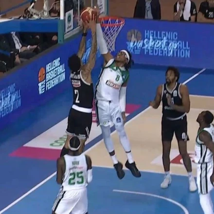 Εξαιρετική εμφάνιση στο πρώτο δεκάλεπτο του Allwyn προημιτελικού του Final 8 κυπέλλου μπάσκετ με αντίπαλο τον ΠΑΟΚ έκανε ο Ρισόν Χολμς. Ο σέντερ του Παναθηναϊκού, μάλιστα, έκανε μία απίθανη τάπα πάνω στον Κλίβελαντ Μέλβιν,.
