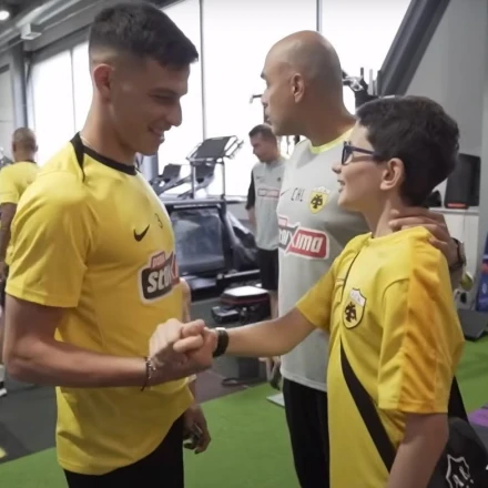 Ο νεαρός «μαχητής», ο οποίος βγήκε νικητής από τη «μάχη» που έδωσε με τον καρκίνο, βρέθηκε στα Σπάτα, στο προπονητικό κέντρο της ΑΕΚ, μαζί με την οικογένειά του, ώστε να δει από κοντά τις εγκαταστάσεις που προπονούνται οι παίκτες της Ένωσης και φυσικά να γνωρίσει και από κοντά το επιτελείο της ΑΕΚ και όλους τους ποδοσφαιριστές.