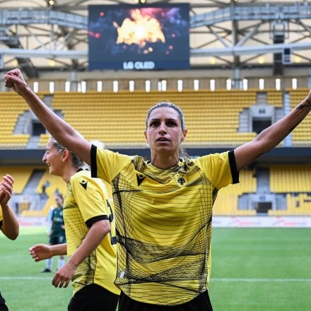 Οι κερκίδες της «Opap Arena» ήταν γεμάτες από «κιτρινόμαυρους» φίλους, που δεν σταμάτησαν λεπτό να τραγουδάνε συνθήματα και να εμψυχώνουν τις παίκτριες.