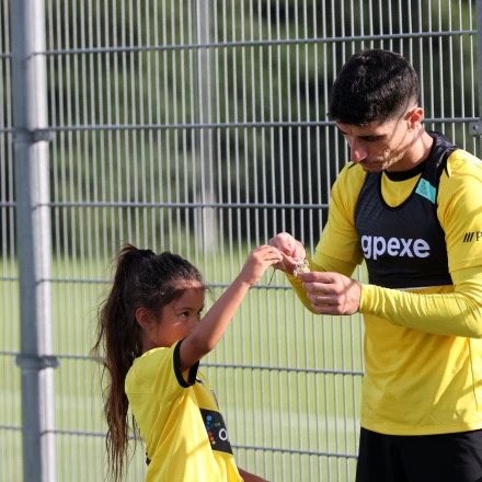 Δυο μικρά κορίτσια της περιοχής, που δίνουν το παρών στην προετοιμασία της ΑΕΚ τα τελευταία τέσσερα χρόνια και έχουν λατρέψει την ομάδα, έκλεψαν την παράσταση και σήμερα.