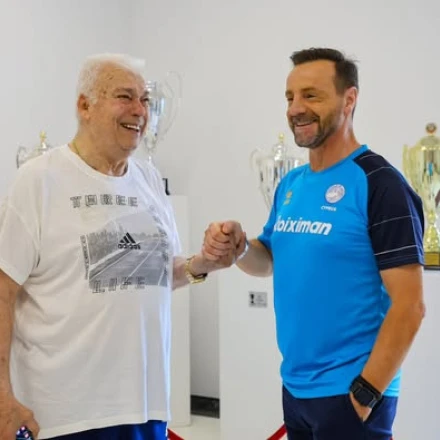 Η εθνική ομάδα της Κύπρου βρέθηκε προ ημερών στις εγκαταστάσεις της Λοκομοτίν Πλόβντιβ, πρόεδρος της οποίας είναι ο Χρίστο Μπόνεφ, με τον οποίο είχε μία θερμή χειραψία ο Έλληνας κόουτς Άκης Μάντζιος.