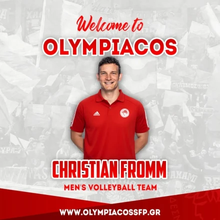 «Ο ΟΛΥΜΠΙΑΚΟΣ Σ.Φ.Π. ανακοινώνει την έναρξη της συνεργασίας του με τον Κρίστιαν Φρομ. Ο Γερμανός ακραίος (ημ. γέννησης 15/8/1990, 2,04μ.) υπέγραψε το νέο του συμβόλαιο και εντάσσεται στο ρόστερ της ομάδας βόλεϊ Ανδρών του συλλόγου.