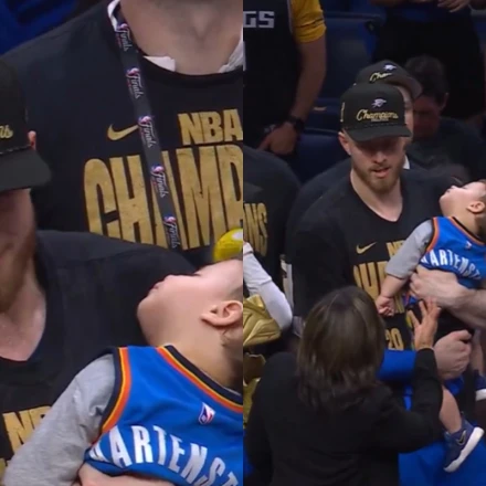 Ο Αϊζάια Χάρτενσταϊν πήρε τον γιο του στην απονομή του πρωταθλήματος. Ωστόσο, ο μικρούλης παρά τον θόρυβο είχε κοιμηθεί στην αγκαλιά του μπαμπά του, προσφέροντας ένα ιδιαίτερο στιγμιότυπο.