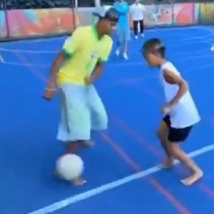 Συγκεκριμένα, ο Ισπανός σούπερ της Μπαρτσελόνα εθεάθη σε φαβέλα του Ρίο Ντε Τζανέιρο, στη Ροσίνα, να παίζει μπάλα με μικρά παιδιά, φορώντας μάλιστα φανέλα της εθνικής Βραζιλίας.
