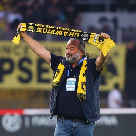 Ο πρόεδρος του δικέφαλου, Μάριος Ηλιόπουλος, πανηγύρισε έντονα τη νίκη, κρατώντας ένα κασκόλ από το πρωτάθλημα του 2023, στέλνοντας μήνυμα αισιοδοξίας για την κατάκτηση του τίτλου και τη φετινή σεζόν.