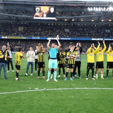 Ο ισχυρός άνδρας της ΑΕΚ, Μάριος Ηλιόπουλος, μαζί με τους παίκτες και το τεχνικό τιμ, χειροκρότησαν τον κόσμο, που αποθέωνε το σύνολο του Μάρκο Νίκολιτς, για τη μεγάλη νίκη που πέτυχε επί του ΠΑΟΚ.