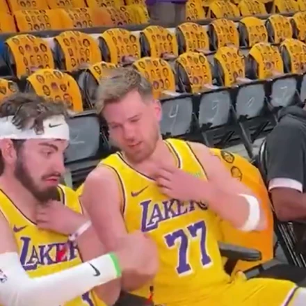 Ντόντσιτς και ΛεΜπρόν από κάποιο όνειρο θερινής νυκτός παρέμειναν στον πάγκο των Λέικερς, δίπλα από τον Μπρόνι, μέχρι λίγη ώρα πριν το τζάμπολ του αγώνα με τους Ρόκετς.