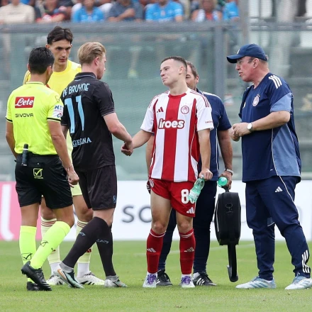 Κατά τη διάρκεια του πρώτου ημιχρόνου στο Καστέλ Ντι Σάνγκρο, το προπονητικό κέντρο της Νάπολι, ο Κέβιν Ντε Μπρόινε έκανε ένα σκληρό μαρκάρισμα στον Σταύρο Πνευμονίδη.