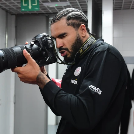 Με μία επαγγελματική κάμερα στα χέρια ο Ναζ Μήτρου-Λονγκ έγινε ο «επίσημος φωτογράφους» του Ολυμπιακού σε μία ιστορική στιγμή για την ομάδα.