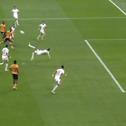 Ο πρώην ποδοσφαιριστής του Παναθηναϊκού έβγαλε την σέντρα και ο νυν φορ του Ολυμπιακού με τρομερό ανάποδο ψαλιδάκι έστειλε την μπάλα στα δίχτυα. Το γκολ αρχικά ακυρώθηκε ως οφσάιντ, όμως στη συνέχεια μέτρησε κανονικά!