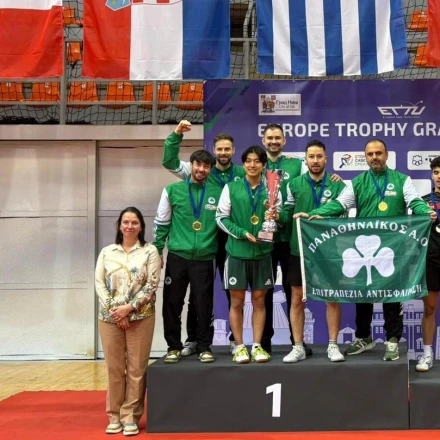 Το τμήμα ανδρών πινγκ πονγκ του Παναθηναϊκού έγραψε ιστορία καθώς κατέκτησε το Europe Trophy στη Σερβία νικώντας την ισπανική CTT Olot με 3-0 και έγινε η ομάδα με τις περισσότερες κατακτήσεις στον θεσμό.