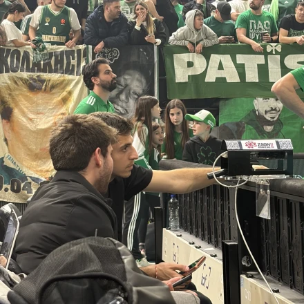 Ο διεθνής ποδοσφαιριστής του Παναθηναϊκού βρίσκεται στο κλειστό της Γλυφάδας «Μ. Λιούγκας» ώστε να παρακολουθήσει και να στηρίξει τα «φίνα κορίτσια» στον ιστορικό ευρωπαϊκό τελικό.