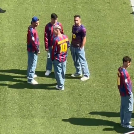 Οι ποδοσφαιριστές της Μπαρτσελόνα μπήκαν στο Καμπ Νόου με τη φανέλα του Ροναλντίνιο / Sreenshot
