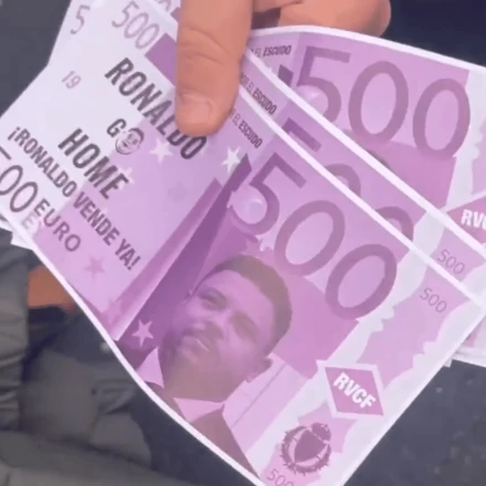 Αντιμέτωποι με την καταστροφική κατάσταση της ομάδας τους, που βρίσκεται στον πάτο της La Liga και σε ένα σερί 14 αγώνων χωρίς νίκη, οι οπαδοί της Βαγιαδολίδ πέταξαν 60.000 πλαστά χαρτονομίσματα με την εικόνα του Ρονάλντο στο γήπεδο του «Στάδιο Χοσέ Θορρίγια» αυτό το Σάββατο (3/5) στο 12ο λεπτό, κατά τη διάρκεια της αναμέτρησης με την Μπαρτσελόνα για την 34η αγωνιστική του πρωταθλήματος.
