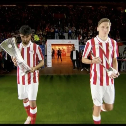 Ποιοι είναι οι δύο έφηβοι ποδοσφαιριστές που μετέφεραν τις ευρωκούπες του Ολυμπιακού στη φιέστα