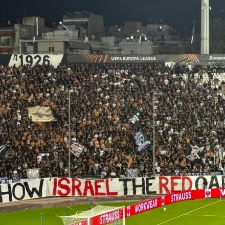 Η παρουσία μιας ισραηλινής ομάδας στην Τούμπα δε θα μπορούσε να μην αποτελέσει αφορμή για τον κόσμο του ΠΑΟΚ προκειμένου να δείξει την αλληλεγγύη του στην Παλαιστίνη. Παρά τις όποιες προτροπές από την ασπρόμαυρη ΠΑΕ για να αποφευχθούν ανάλογες ενέργειες, η θύρα 4 γέμισε με παλαιστινιακές σημαίες αλλά και με δυο μεγάλα πανό που δέσποζαν στο πέταλο. Το “Show Israel the red card” και το “Stop Genocide” έμειναν αναρτημένα για σχεδόν ολόκληρη την αναμέτρηση του Δικεφάλου με την Μακάμπι Τελ Αβίβ, κάτι που δεν είναι πρωτοφανές στα ευρωπαϊκά γήπεδα αλλά δεν περνάει φυσικά και απαρατήρητο από την ποδοσφαιρική ομοσπονδία.