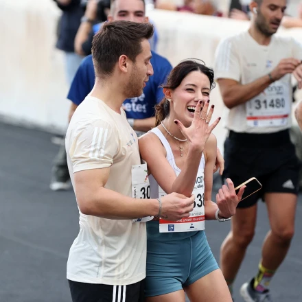 Φέτος στον τερματισμό των 10χλμ όμως συνέβη κάτι πολύ ρομαντικό. Ένα ζευγάρι τερμάτισε μαζί και ο άνδρας στη συνέχεια γονάτισε κι έδειξε το δαχτυλίδι στη σύντροφό του, κάνοντας της έτσι πρόταση γάμου.