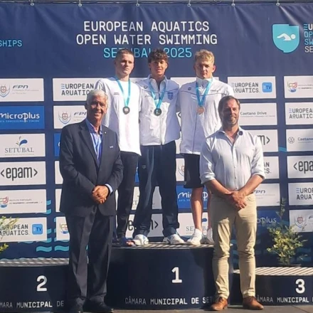 Δεν είναι η πρώτη διάκριση που έχει πάρει η χώρα μας σε Ευρωπαϊκό Πρωτάθλημα κατηγοριών μαραθώνιας κολύμβησης. Το καλοκαίρι του 2024 ο τότε 16χρονος κολυμβητής του Γιώργου Σούρδη είχε κατακτήσει στη Βιέννη το χρυσό μετάλλιο στα 5χλμ της κατηγορίας των παίδων. Φέτος, παρότι άλλαξε κατηγορία, επέστρεψε στην κορυφή. Πραγματοποίησε ένα καταπληκτικό τελευταίο χιλιόμετρο δίνοντας αγώνα χεριά με χεριά με τον Ρώσο Λεβ Σπανόπουλο που συμμετείχε ως ουδέτερος αθλητής και τον κέρδισε στα κλάσματα με 1:28:29.24 έναντι 1:28:29.52. Τρίτος τερμάτισε ο Σίγκμοντ Πίτλικ (Ουγγαρία) με 1:28:30.68.