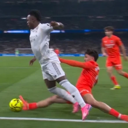 Αναλυτικότερα, στο ξεκίνημα του δεύτερου μέρους, ο διεθνής εξτρέμ βρέθηκε στο έδαφος μετά από μαρκάρισμα του Αραμπούρου, ο όποιος αξίζει να αναφέρουμε ότι υπέπεσε και στην πρώτη παράβαση, με τα ριπλέι βέβαια να μην δικαιώνουν την απόφαση του διαιτητή. Ο ποδοσφαιριστής των φιλοξενούμενων φαίνεται να έρχεται ελάχιστα σε επαφή με το σώμα του Βινίσιους, με τον νεαρό να πέφτει κάτω αμέσως.