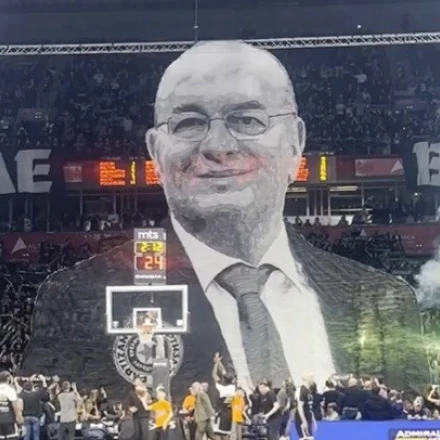 Πριν το τζάμπολ της αναμέτρησης, οι φίλοι των «ασπρόμαυρων», ύψωσαν ένα πελώριο κορεό-πανό, με τη φιγούρα του Ντούσκο Βουγιόσεβιτς, του θρυλικού προπονητή της Παρτίζαν, ο οποίος έφυγε από τη ζωή πριν μερικές εβδομάδες.