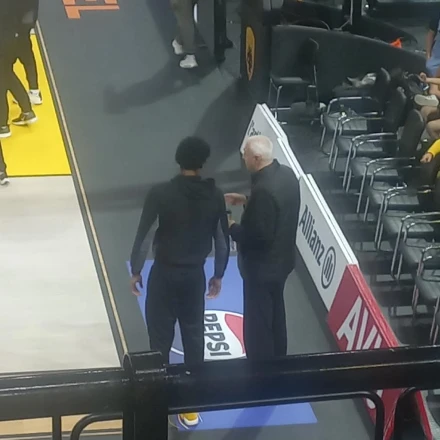 Πριν από το τζάμπολ του αγώνα, ο Αμερικανός άσος βγήκε στο παρκέ και είχε συζήτηση με τον Ντράγκαν Σάκοτα για αρκετά λεπτά, με τον Σάλε να του εξηγεί τον τρόπο που θέλει να τον αξιοποιήσει στο παρκέ.