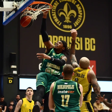 Ο Ρισόν Χόλμς υποδέχτηκε την μπάλα μέσα στο «ζωγραφιστό», σηκώθηκε και την κάρφωσε με απίστευτη δύναμη στο καλάθι του Αμαρουσίου.