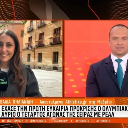 Από τη Μαδρίτη για το Athletiko και το Action24 η Βάλια Πηλιανίδη μεταφέρει στον Βασίλη Μπακόπουλο και στην εκπομπή «Πάμε γήπεδο», όλα τα νέα του Ολυμπιακού, μία μέρα πριν το Game 4 κόντρα στη Ρεάλ για τα Playoffs της Euroleague.