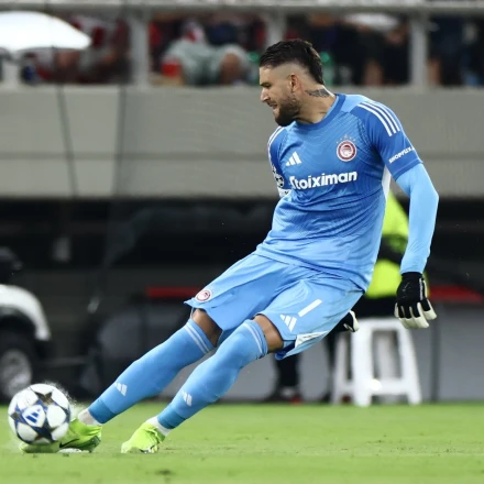 Ο γκολκίπερ του Ολυμπιακού στην προσπάθεια του να διώξει την μπάλα, την έστειλε πάνω σε αντίπαλο επιθετικό, με την μπάλα να παίρνει περίεργη τροχιά και να πηγαίνει άουτ, ακριβώς δίπλα από το δοκάρι.