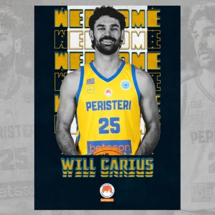Η ΚΑΕ Περιστέρι Betsson ανακοινώνει τη συμφωνία της με τον αθλητή Γουίλ Κάριους, ο οποίος θα φοράει τη φανέλα του συλλόγου μέχρι το τέλος της αγωνιστικής περιόδου 2025-2026.