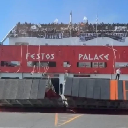 «Τρέλα» στο λιμάνι του Ηρακλείου: Οι φίλαθλοι του ΟΦΗ με συνθήματα και καπνογόνα πάνω στα πλοία (video)
