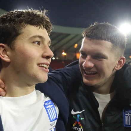 Ο Κωνσταντίνος Καρέτσας και ο Χρήστος Τζόλης με την φανέλα της Εθνικής Ελλάδας / Πηγή: Eurokinissi