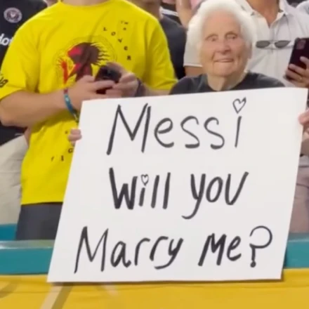 Το ξεκαρδιστικό πανό της γιαγιάς έγραφε: «Μέσι, θα με παντρευτείς;». Είναι ξεκάθαρο πως επρόκειτο για έναν χιουμοριστικό τρόπο να τραβήξει την προσοχή του Λίο, και ήδη έχει γίνει viral.