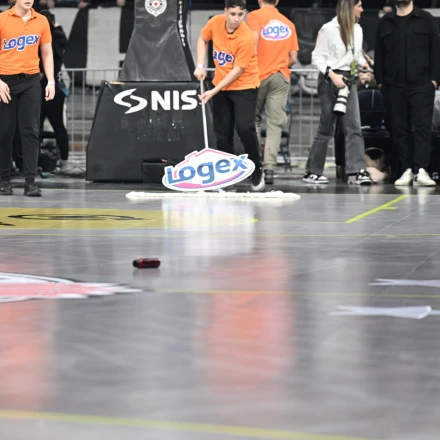 Ξεκίνησε ρίψη αντικειμένων προς τον «πράσινο» πάγκο, την ώρα όπου μερικά αντικείμενα πέτυχαν και άτομα της αποστολής του Παναθηναϊκού. Κάποια, χτύπησαν τον General Manager of Basketball Operations Δημήτρη Κοντό και τον γυμναστή του κλαμπ, Δημήτρη Πασπαλα. Για να αποχωρήσει ο Ρογκαβόπουλος προς τα αποδυτήρια, χρειάστηκε να βρεθούν άνθρωποι της ασφάλειας του γηπέδου κοντά του, καθώς τα αντικείμενα έπεφταν βροχή από την κερκίδα.