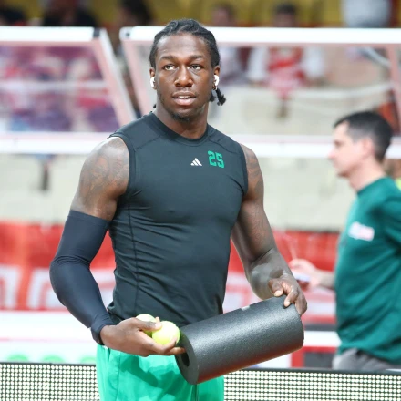 Ο Κέντρικ Ναν έκανε είσοδο στο παρκέ του ΣΕΦ, όπου έγινε δέκτης έντονων αποδοκιμασιών από τον κόσμο του Ολυμπιακού.
